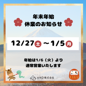 ■年末年始 休業期間 2025年12月27日(土) ~ 2026年1月5日(月)