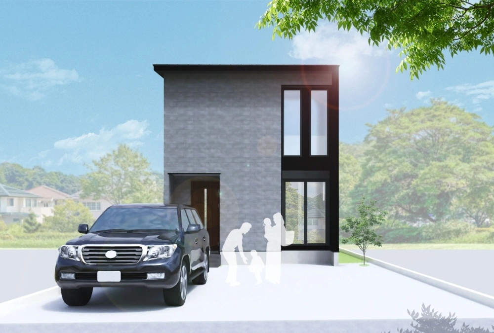 外観デザインは、柔らかな質感の大判タイルが落ち着きのあるモダンな存在感を与える外観デザインです。