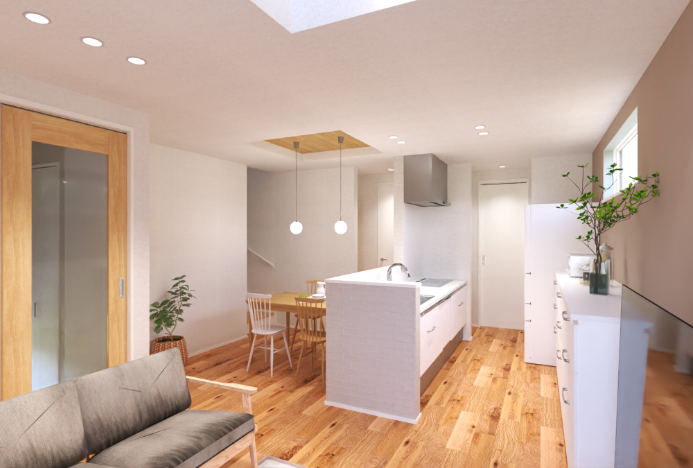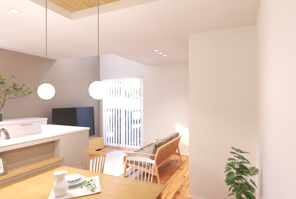 また、ダイニング上に一部折り上げ天井を設け、天井高にアクセントをつけることで、空間にメリハリが生まれます。