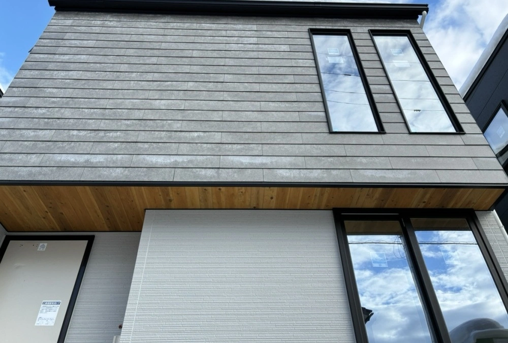 自然素材の質感を生かしたソリッドタイル調の外壁材をアクセントに用いた上質な外観デザインです。