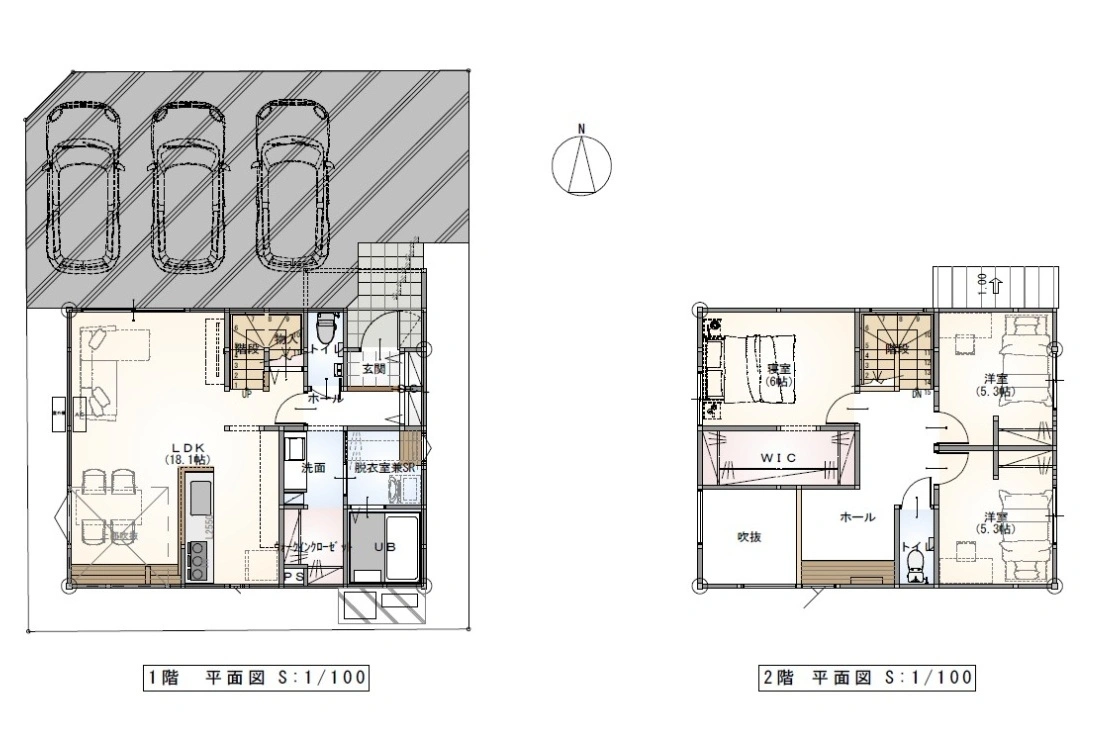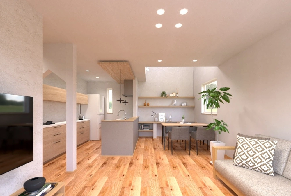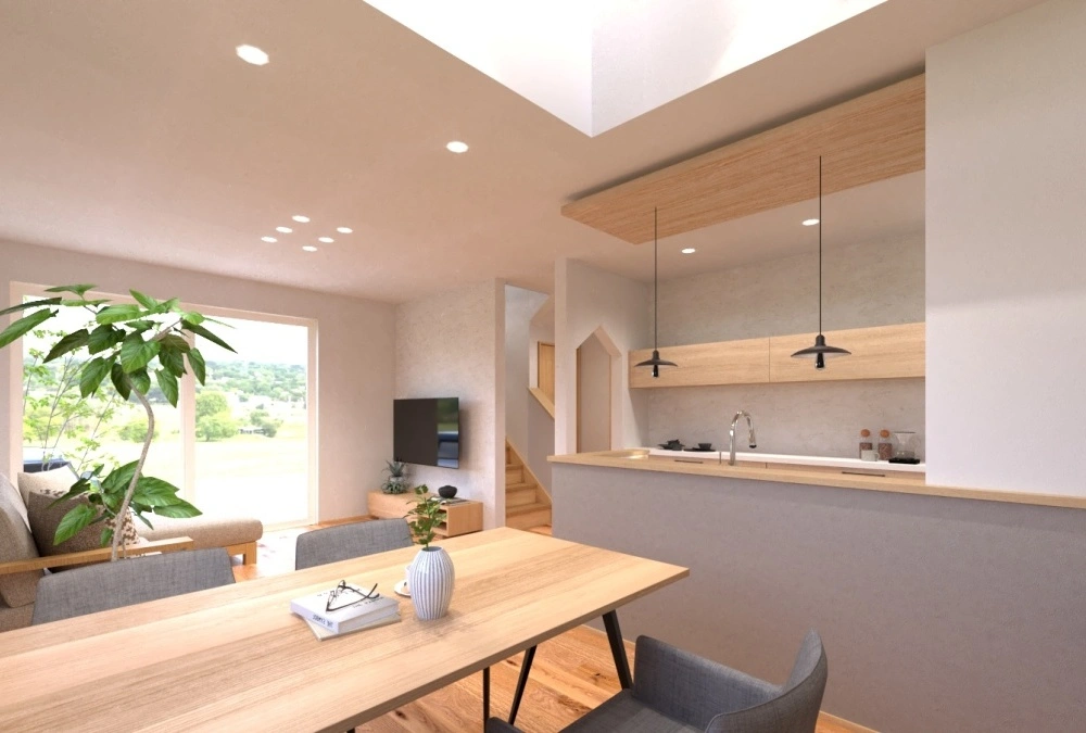 角地を活かした陽当たりの良さと解放感、南側に設けた吹抜からも自然光が差し込み帖数以上(LDK18.1帖)の広がりを感じられます。