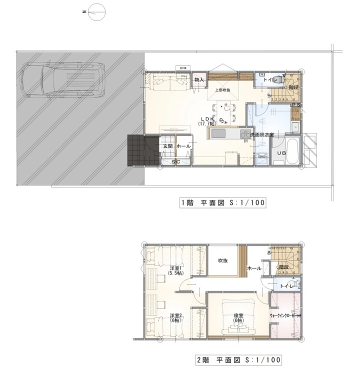 敷地内は車3台分の駐車スペースを確保しており、2台並列+来客用など柔軟な使い分けが可能です。