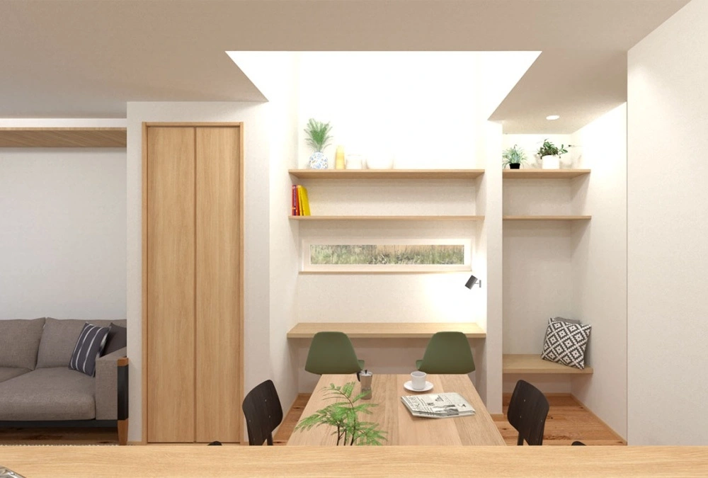 LDKの中に設けられた見せる収納は、使い方が自由です♪本を置いておうち図書館として使うこともできます!